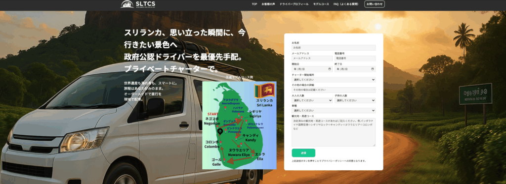 スリランカ旅行を計画中の方は、ぜひ一度スリランカタクシーチャーターサービス(SLTCS)に問い合わせてみてください。ご希望や日程に応じてモデルコースの提案や見積もりを日本語で対応してもらえます。LINEやメールで出発前から帰国まで手厚いフォローを受けられるので、初めての海外旅行やシニアの方でも不安なく利用できます。